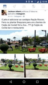 Na foto postada pelo dono de um restaurante situado na zona sul de Ilhéus, alguns cavalos fazem parte da paisagem.