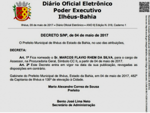 Veja abaixo o Decreto de nomeação, com data do dia 04/05/2017, publicado no dia 09/05/2017.