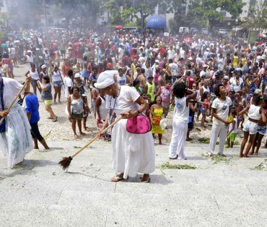 A lavagem da escadaria da Catedral de São Sebastião, de Ilhéus,...