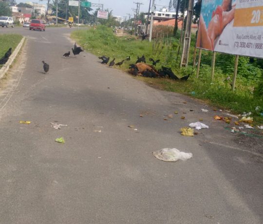 Animal morto é deixado nas margens da rodovia Ilhéus-Olivença