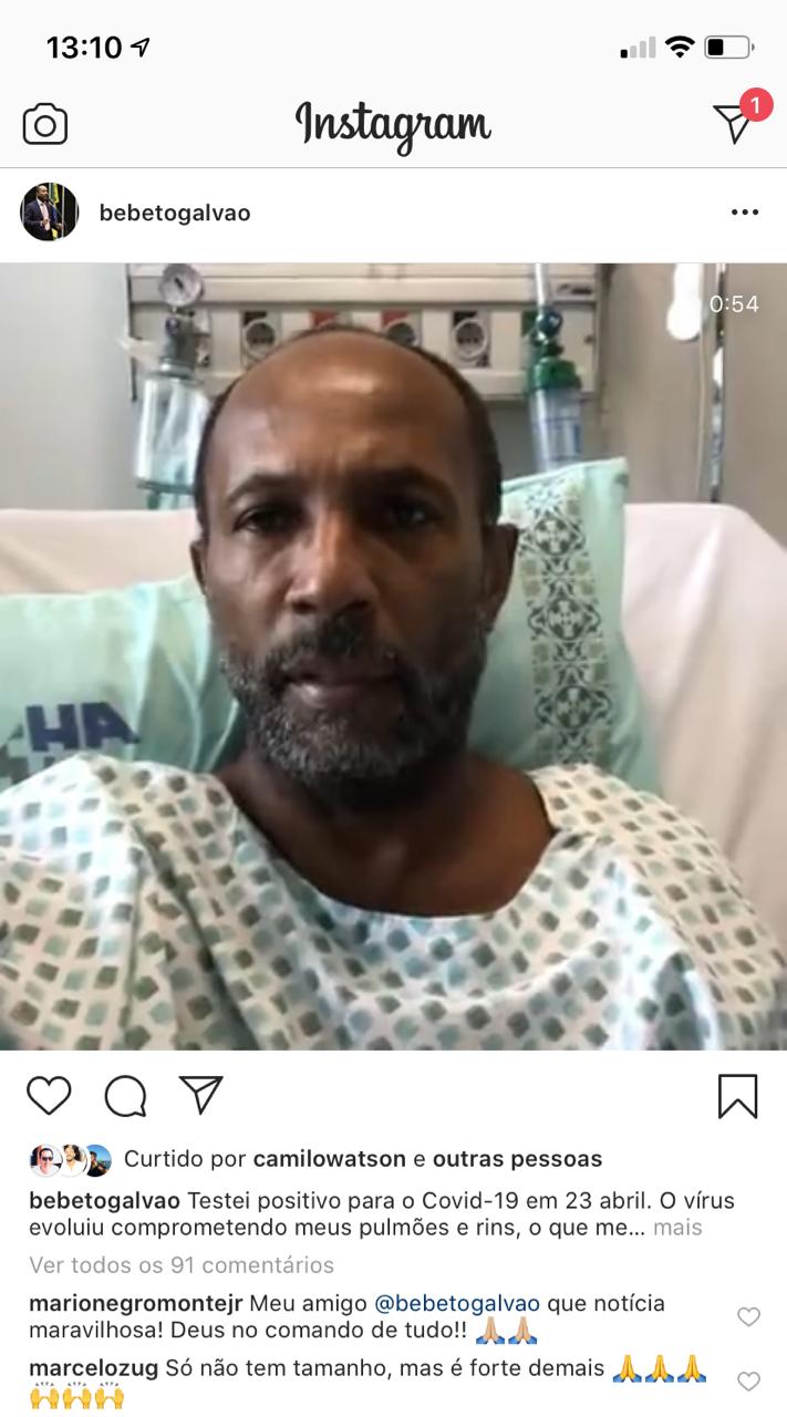 Covid-19: Bebeto Galvão recebe alta do Hospital Aliança