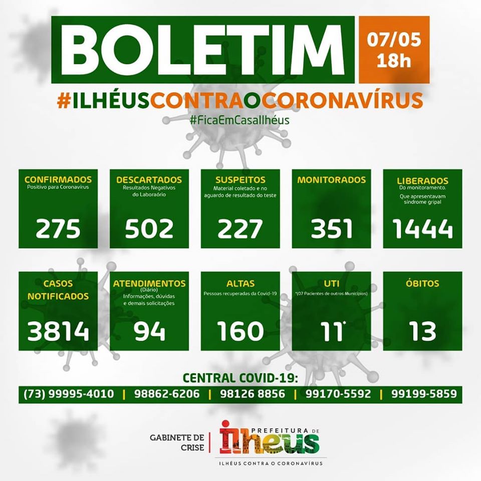 Os dados são do boletim epidemiológico da Secretaria de Saúde de Ilhéus. Mais informações na imagem acima.