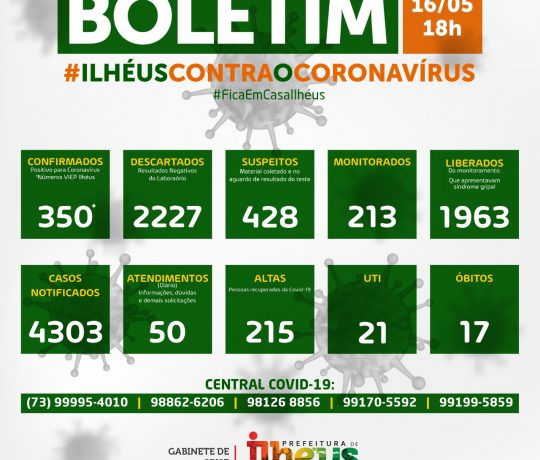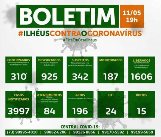 Hoje, 11, o boletim epidemiológico da Prefeitura de Ilhéus informou que...