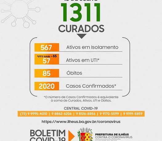 Ilhéus registra mais três mortes por Covid-19 e ultrapassa 2 mil casos
