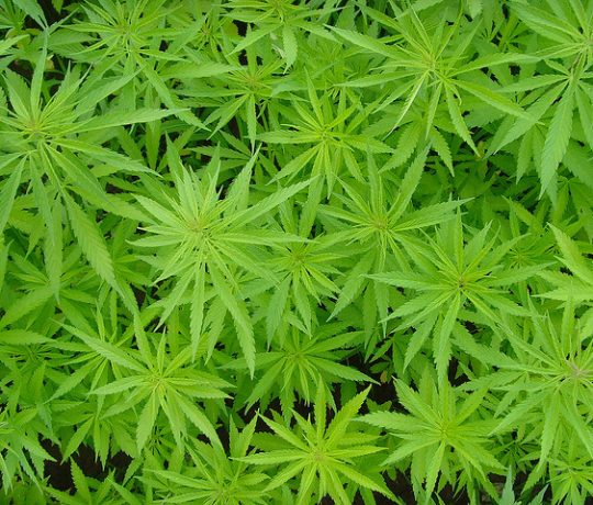 Uma plantação com dezenas de pés de maconha, alguns com até...