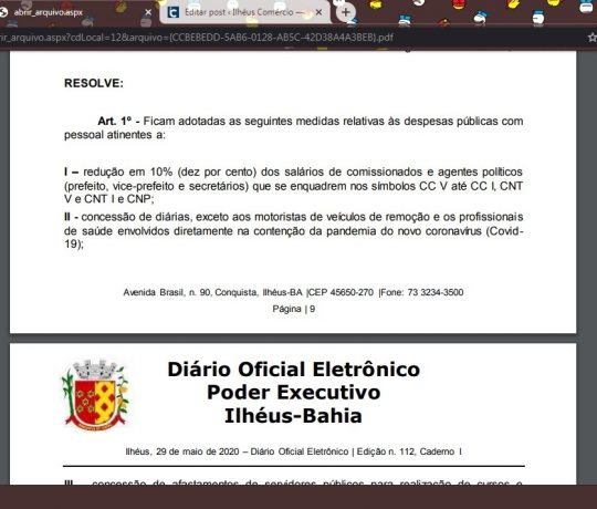 Ontem (29), a Prefeitura de Ilhéus publicou no Diário Oficial do...